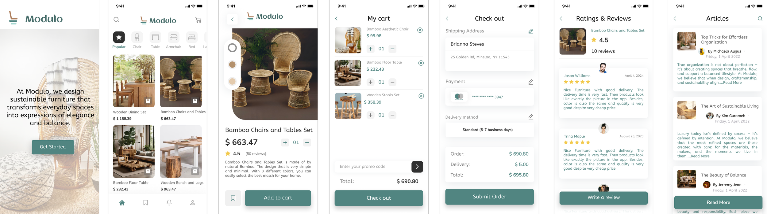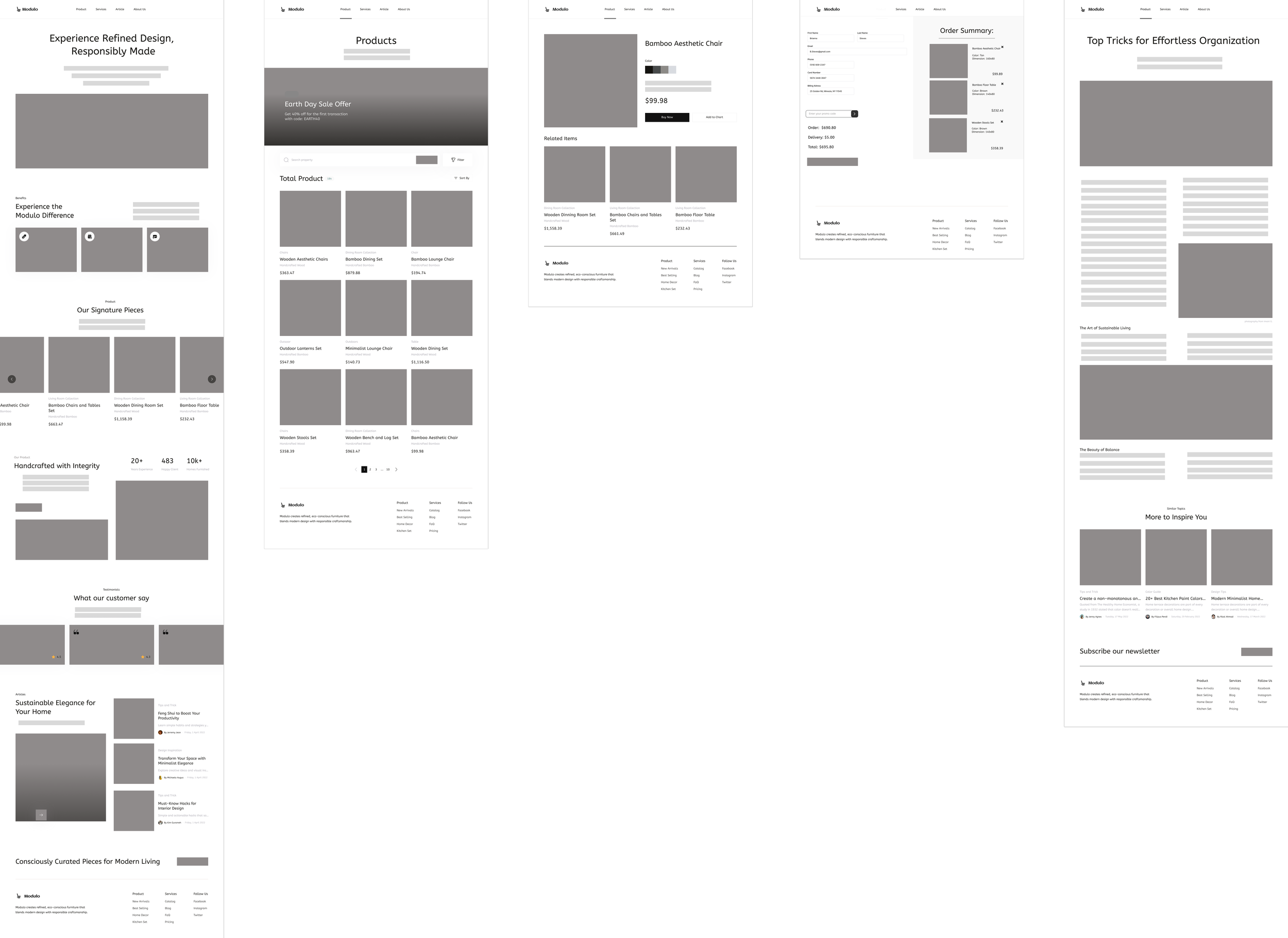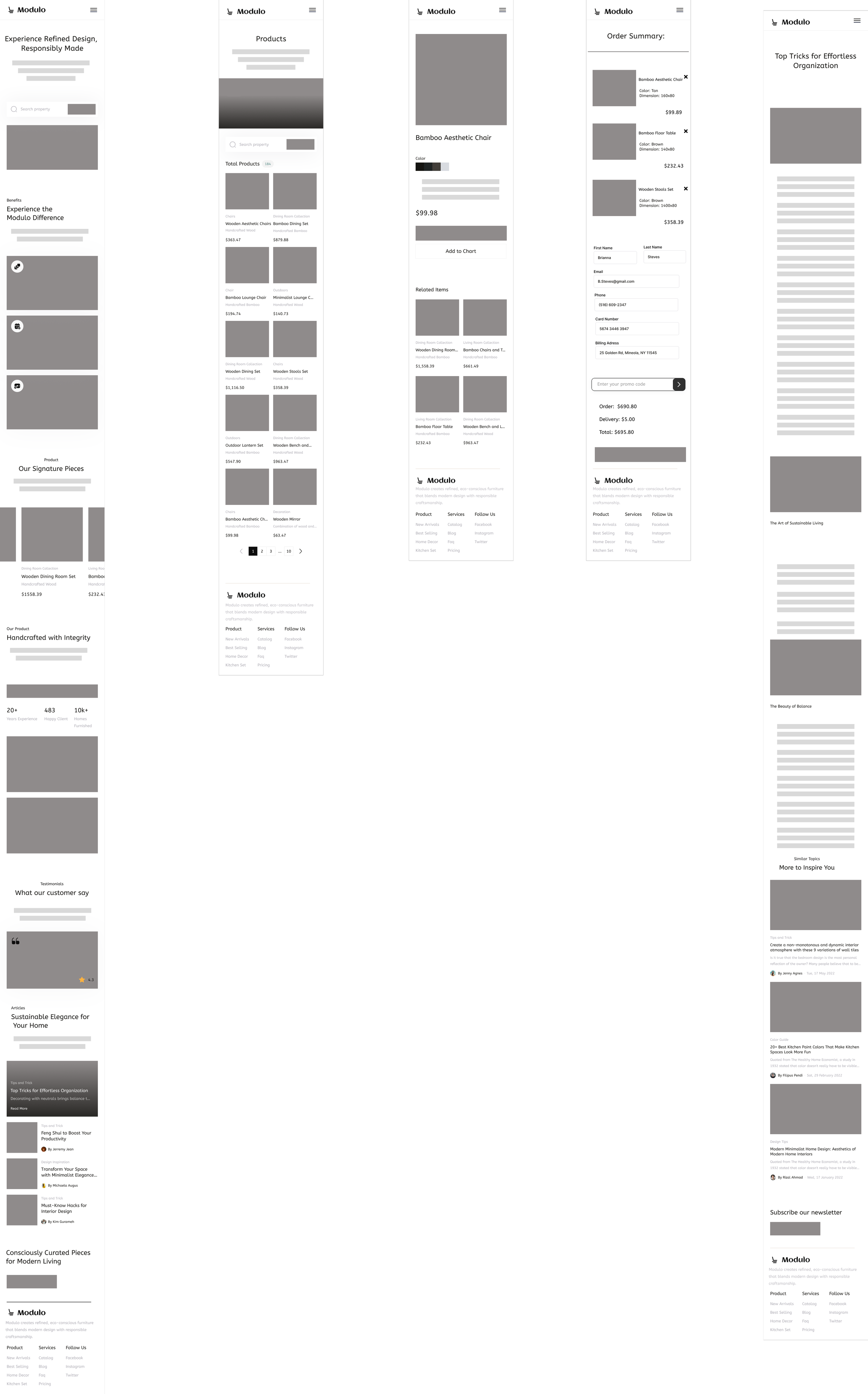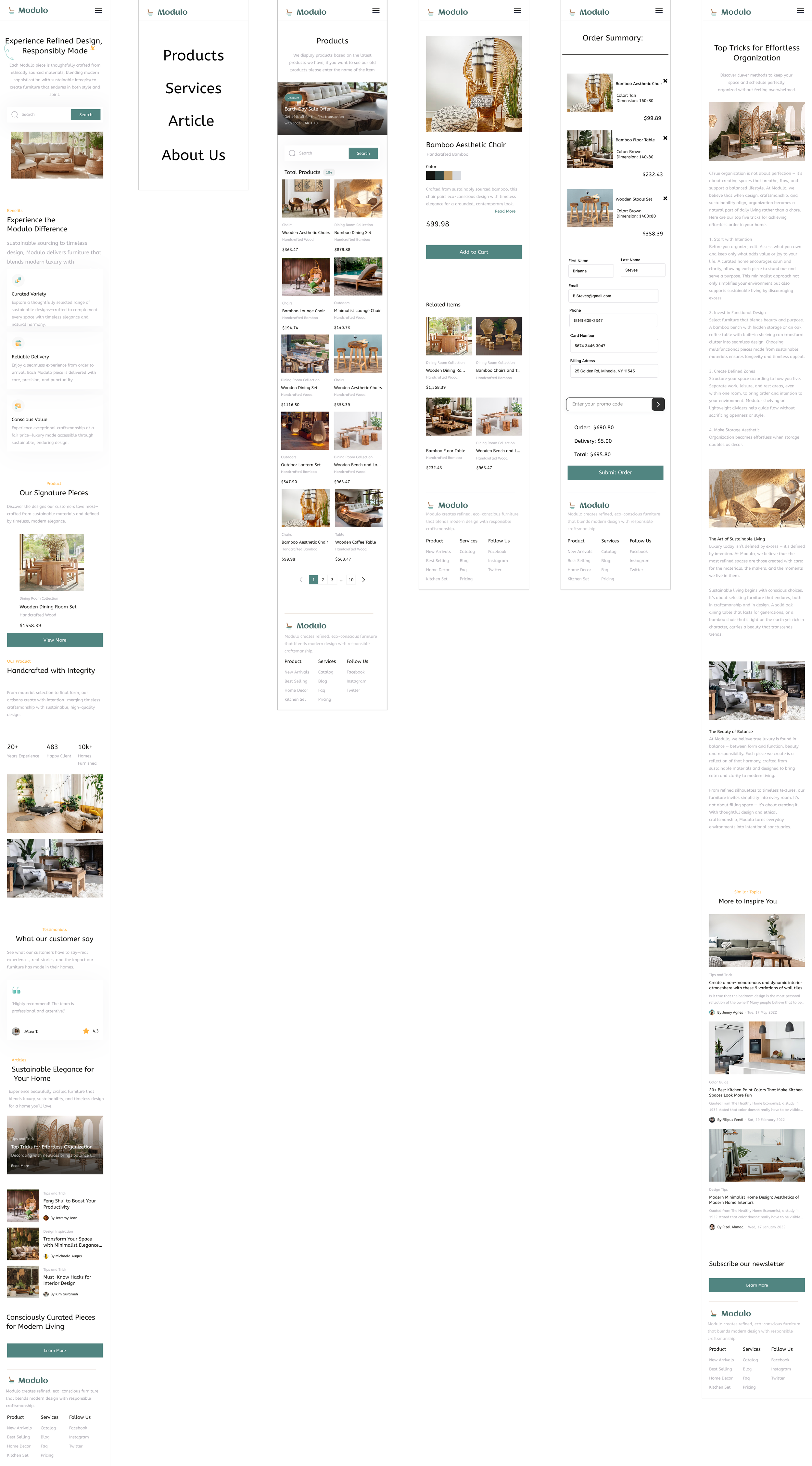 To design a seamless, trustworthy shopping experience for Modulo, a sustainable luxury furniture brand. The goal was to make sustainability feel premium and accessible — helping users browse with ease, understand material transparency, and complete purchases confidently