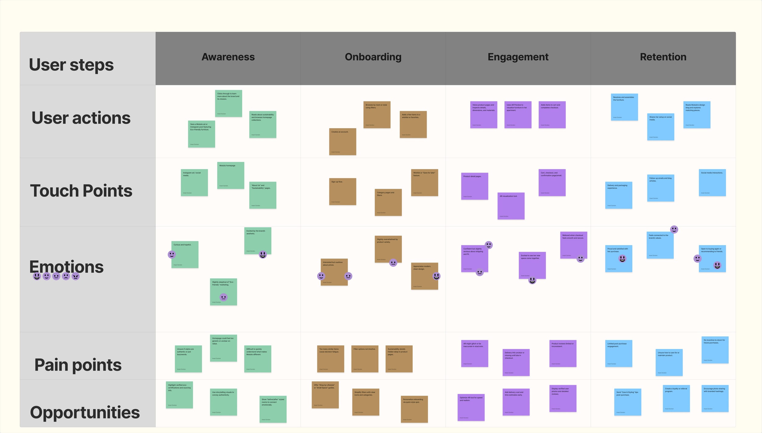 I mapped the user journey for Maya (our main persona) from awareness to retention and designed user flows for browsing, filtering, and completing purchases.